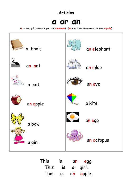 Vendredi 24 avril: Hello everyone! Je suis désolée de revenir vers vous si tard après la rentrée! Bon toujours pas d'ordinateur mais ça va s'arranger. En attendant je vous donne un document de révision simple sur l'article indéfini en anglais.