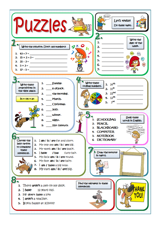 : révisions sur les nombres (CROSSWORD NUMBERS -> il faut additionner les chiffres et inscrire le résultats en lettres) et les couleurs avec un petit coloriage pour ceux qui peuvent imprimer!